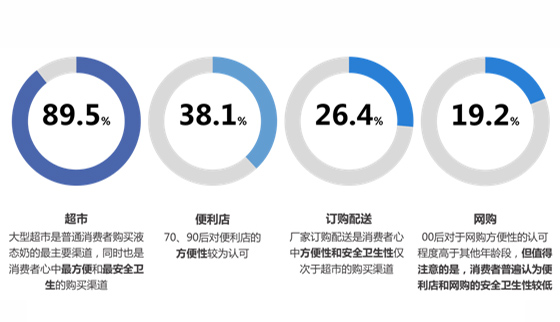接近九成的消費(fèi)者會(huì)選擇從超市購(gòu)買液態(tài)奶,其次是便利店(38.1%)和訂購(gòu)配送(26.4%),網(wǎng)購(gòu)的比例更低,只有不到兩成。在消費(fèi)者心中,超市也是“更方便”和“更安全衛(wèi)生”的購(gòu)買渠道,其次是廠家訂購(gòu)配送的渠道,僅有18.2%和13.7%的被訪消費(fèi)者認(rèn)為便利店和網(wǎng)購(gòu)是“更方便”和“更安全衛(wèi)生”的購(gòu)買渠道。