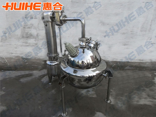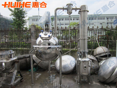 球形濃縮設備有濃縮罐、第一冷凝器、汽液分離器、第二冷凝器、冷卻器、受料桶六個部件組成。規(guī)格系列為300L、500L、700L、1000L,濃縮罐為夾套結構冷凝器為列管式,分離器為折流分離式、冷卻器為蛇管式。減壓蒸餾,為降低液面壓力,使液料沸點相應降低,因為液料蒸餾在沸點時進行的快,因此真空度的高低,根據(jù)液料的熱敏性,由用戶自行決定進行調節(jié)。