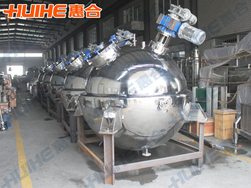 After investigations in many companies,clients from Chicago chose our Hangzhou Hui Machine Facture Co.,Ltd.These equipment had been finished in the scorching sun.After several times’ test, the equipment had been sent to Chicago on June 24th,2015.The equipment included: the spherical mixing kettle, roller, emulsifying tank, Vibration table, heat exchanger, filter, pump and conveyor.These photos were taken from the scene: