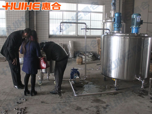 The UK customer wants to buy stainless steel tank to process syrup just like honey. Through many communication and consultation, he ordered 100L and 1000L emulsifying tank each on the end of November in 2014. More than one month, the device is finished successfully. And he came to our factory to inspect the emulsifying tank on January 9th, 2015; and the salesman and the engineer introduced the emulsifying tank patiently and detailed, and he is content with the device very much.