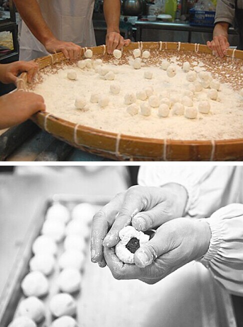 湯圓的做法和包餃子的過程類似:先將糯米粉加水和成團(tuán),然后放置幾小時(shí)“醒”透,包湯圓的時(shí)候就掐料(一般是花生、芝麻)取一小團(tuán),捏成圓片,然后把餡料放進(jìn)去,更后揉成圓球。