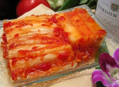 11)腌漬好的泡菜,澆上一點(diǎn)辣椒油吃起來味道酸辣開胃。
