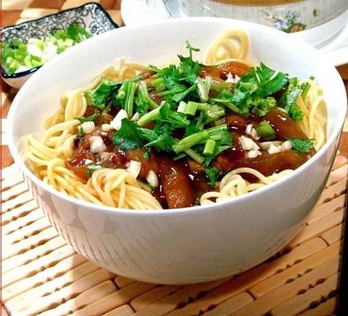 原料:面條,豬肉餡。輔料:食用油適量,鹽一勺,糖一勺,辣椒面適量,醋一勺,醬油一勺,蔥花一小把,芝麻醬或花生醬適量,蒜末適量,芽菜適量。做法:1、鍋中注入油,爆香蔥,蒜碎,下入肉餡煸炒均勻。2、烹入料酒,加入醬油 糖煸炒均勻。3、下入芽菜繼續(xù)翻炒均勻即成臊子。4、把辣椒面和芝麻放入小碗中。5、鍋中注入有燒至6成熱,將熱油澆在辣椒碗中,攪拌均勻即成油辣子。6、醬油 糖 醋按10;5;1的比例調拌均勻,倒入鍋中,煮開即。倒出晾涼。7、取一碗加入適量的芝麻將 特質醬油 鹽 雞精 花椒粉 蔥碎 蒜碎 油辣子成料汁。8、鍋中注入水,燒開下入面條煮熟,料碗中,加入一勺煮面的湯。把調料沖開,將面條撈入湯碗中。9、澆上肉末臊子,加入花生碎,用香菜點綴一下即可。