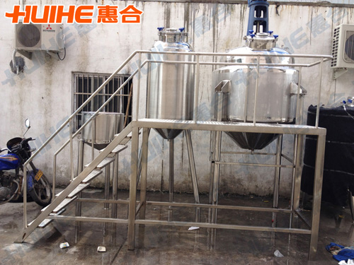 不銹鋼配料罐缸體、缸蓋、攪拌槳、進(jìn)料口、出料口均由不銹耐酸鋼1Cr18Ni9Ti制成。